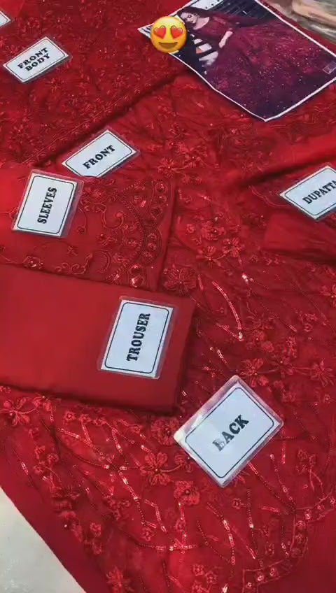✅ Front net with detailed heavy embroidery 🧵, sparkling hand stone work 🤚, fancy nug accents & elegant 3D floral embellishments